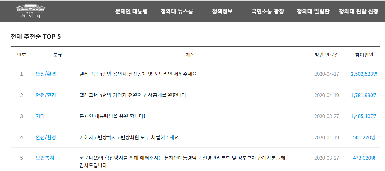 문재인 대통령께서도 이번 사건과 관련하여 적극적 조사의 필요성에 대해 언급한바 일단은 조속히 조주빈을 포함한 공범들 그리고 성 착취물를 같이 공유했던 사람들에 대한 엄중한 처벌을 하고, 정부에서는 지속적으로 발생해왔던 이러한 불법 성 착취물에 대한 근절을 위한 법 제정에 힘써주었으면 좋겠습니다.