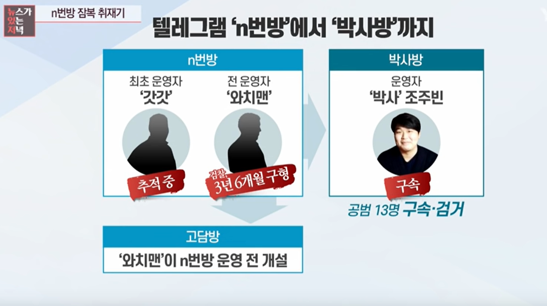 사실 처음 뉴스를 접했을 때 회원들도 협박했네 등의 표현이 모호해서 회원들을 반협박식으로 공범으로 만든 부분이 있구나라는 생각을 했었는데 그게 아니라는 것을 알게 되었습니다. 여러 개의 방에 여러 관리자가 있었고, 그중에서도 자신들끼리 난다긴다하는 성 착취물 및 음란물을 공유하는 범죄자들이 있다는 것을 알고, 정말 충격적이었습니다. 국민일보에 게재한 이야기 형식의 '추적단 불꽃'의 취재 내용을 읽어봤는데 차마 여기서 거론하기가 민망하고 힘든 내용들입니다.