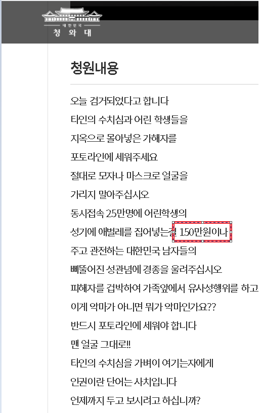 먼저 바로잡을 내용으로 꼽은 것은 현재까지 약 260만의 국민이 동의한 청원 글입니다.