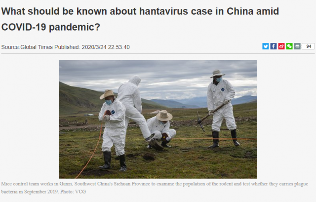 중국 글로벌타임스의 기사에 따르면 24일 남서부 운남성에서 한 노동자가 출근길 버스에서 숨지는 사건이 발생했는데 검사해보니 코로나바이러스는 음성이지만 한타바이러스에는 양성반응을 보였다고 합니다.