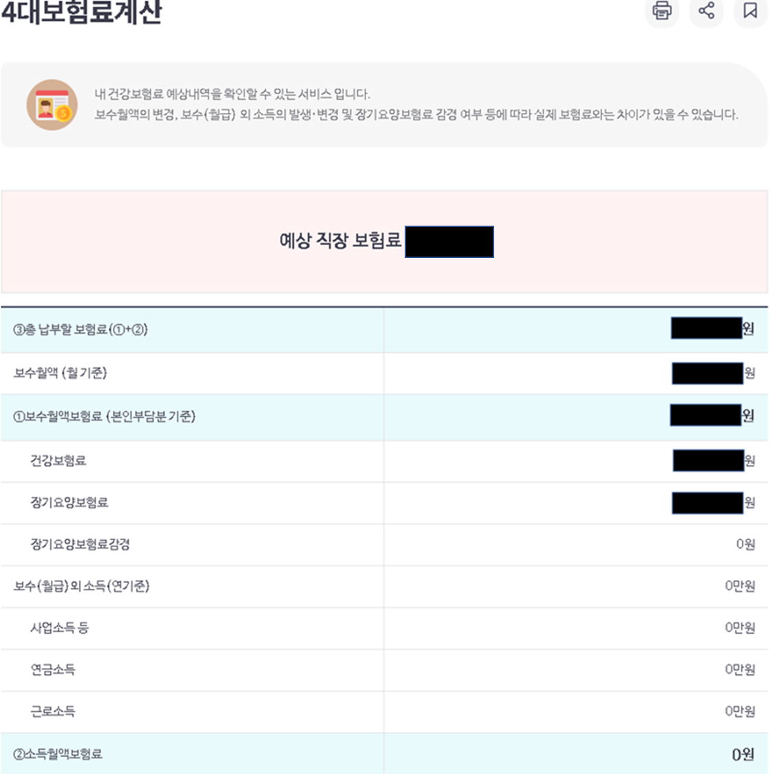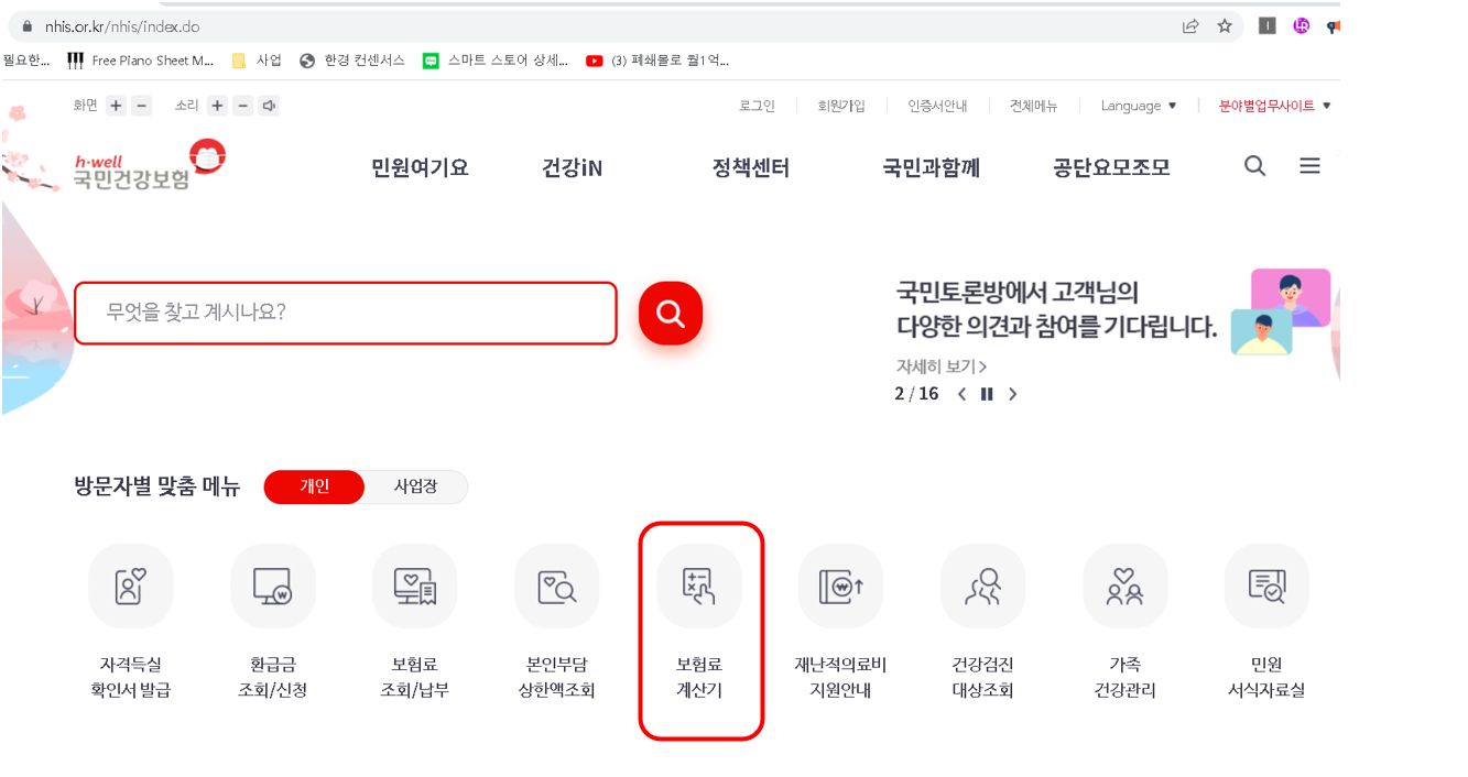 소득은 국민건강보험공단의 보험료 계산기를 통해 확인하실 수 있는데, 하기 보시는 것처럼 홈페이지의 중단에 보험료 계산기를 통해 소득을 확인하시면 됩니다.