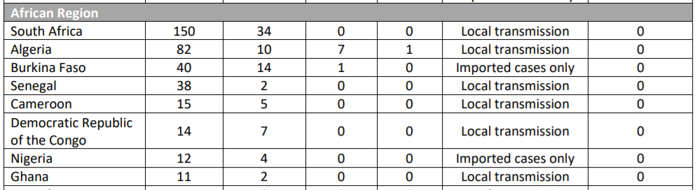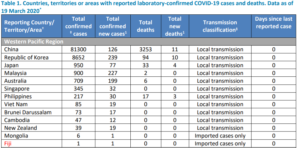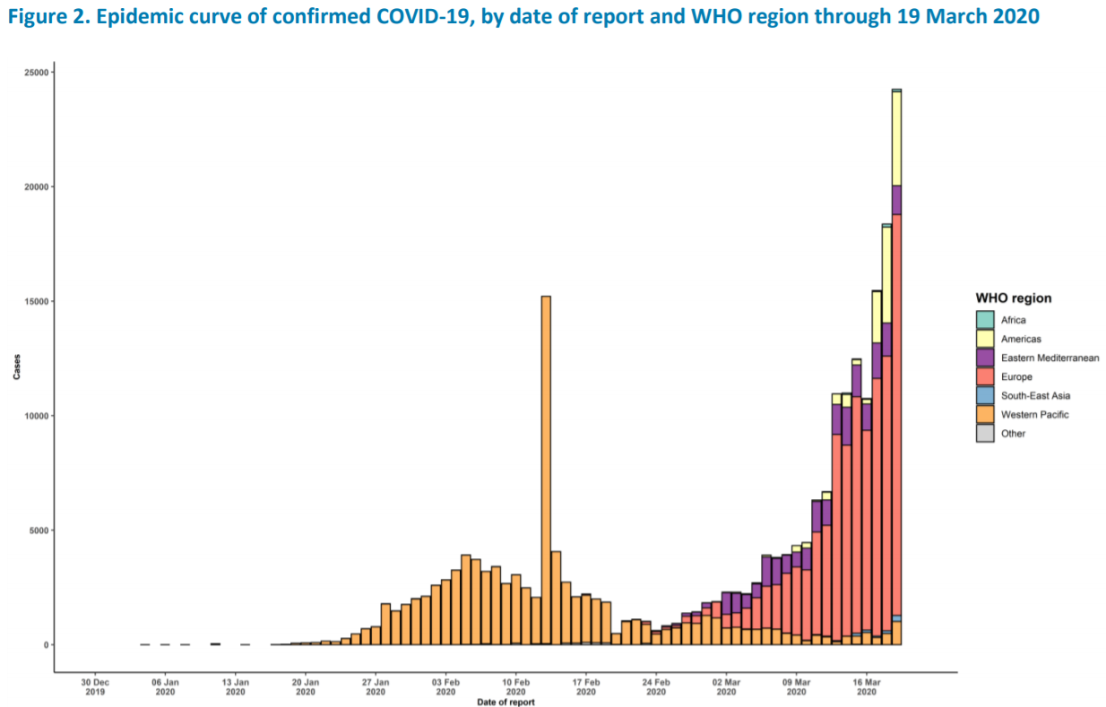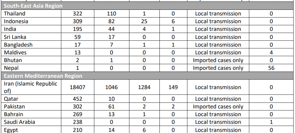 국제 보건 기구(WHO, World Health Organization)의 일 별 상황보고에 따르면 아프리카(2), 북미(2), 서태평양(2) 지역 총 6개의 지역에서 코로나 바이러스가 발견되었다고 합니다.